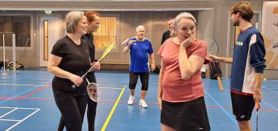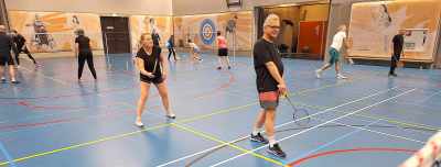 Tot onze verbazing kwamen we ineens in een aangeklede sportzaal terecht. De kale wanden van Sporthal Lewenborg waren bekleed met afbeeldingen uit de sportwereld afgedrukt op zacht stootkussenachtig materiaal. Het stoort niet, heeft een rustige uitstraling en is echt wel een verfraaiing.